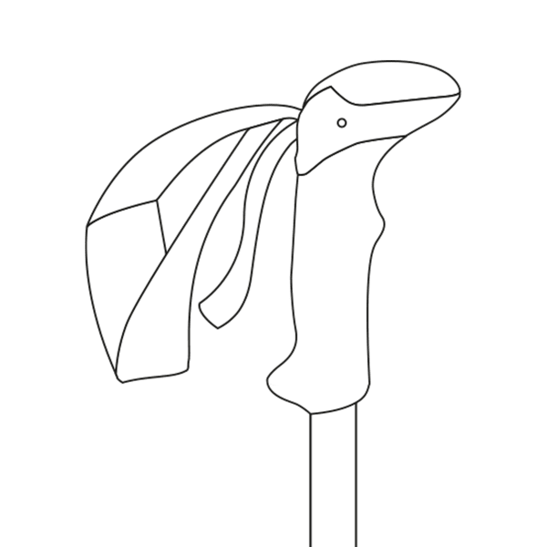 Ultralehká trekingová rukojeť bez hran s osvědčenými komfortními ergonomickými úchopovými zónami a integrovaným nastavitelným bezpečnostním poutkem.